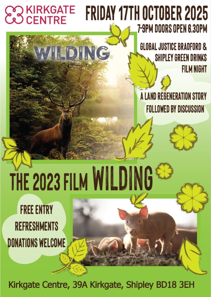 Global Justice Bradford and Bradford Cathedral are co-operating in showing a series of films with an environmental theme. They are shown in the de Lacy Centre in the cathedral grounds (BD1 4EH)